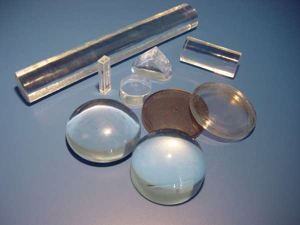 光學熔融設備從孔口直接擠出截面為圓形(雷射鏡片)或方形的玻璃柱。藉由不同的壓法,玻璃塊能變成圓形或稜形柱狀。除此之外,塊狀、望遠鏡片或其他所需的形狀也都能生產。這裡提到的設備生產效率非常高,在幾小時內即可改變生產玻璃的種類,因此能毫無困難地生產特殊玻璃配方。