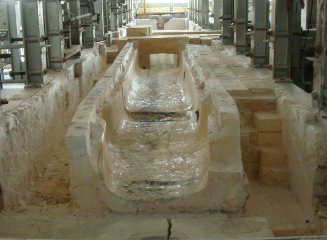 在窯爐及終端爐使用氧化鋯作為耐火材料,長時間下來會溶於熔融玻璃液中。然而在經終端爐流速減緩後,熔融玻璃內的鋯氧化物粒子會沉澱,並經由卸料設備從底部卸料設備排出。