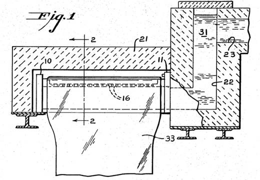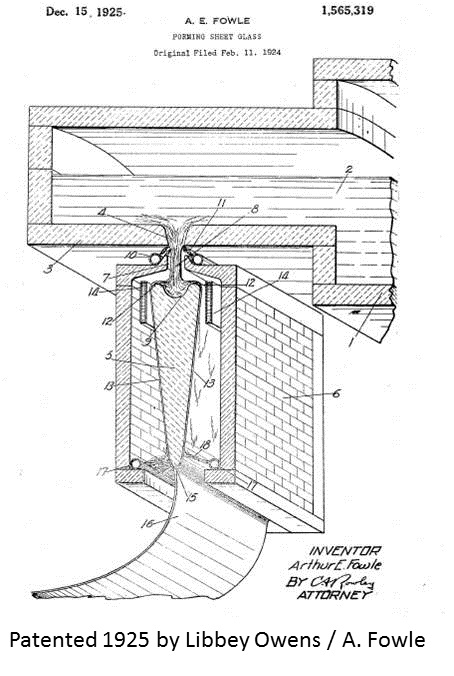 The method pioneered by Libbey Owens Sheet Glass Co. in the 1920ies. The inventor has been Arthur E. Fowle who has filed the patent in 1925.